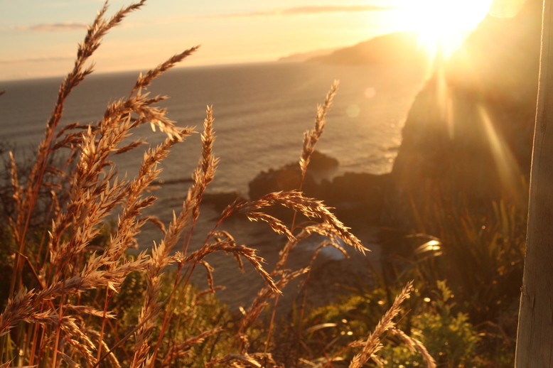 Nach einer Vesperpause und einer netten Unterhaltung mit einem Neuseeländischen Ehepar machten wir uns wieder auf den Weg, um mit dem Bodo die nächste Etappe zu schaffen. Das nächste Ziel war ein Free-Camp an der Küste, also etwa 200km gen Osten. Die Fahrt war sehr angenehm, denn es war leicht bewölkt und kühlte Richtung Küste immer weiter ab. Landschaftlich führte der Weg durch unendlich weitläufige, saftig grüne Wiesen und Schafweiden.