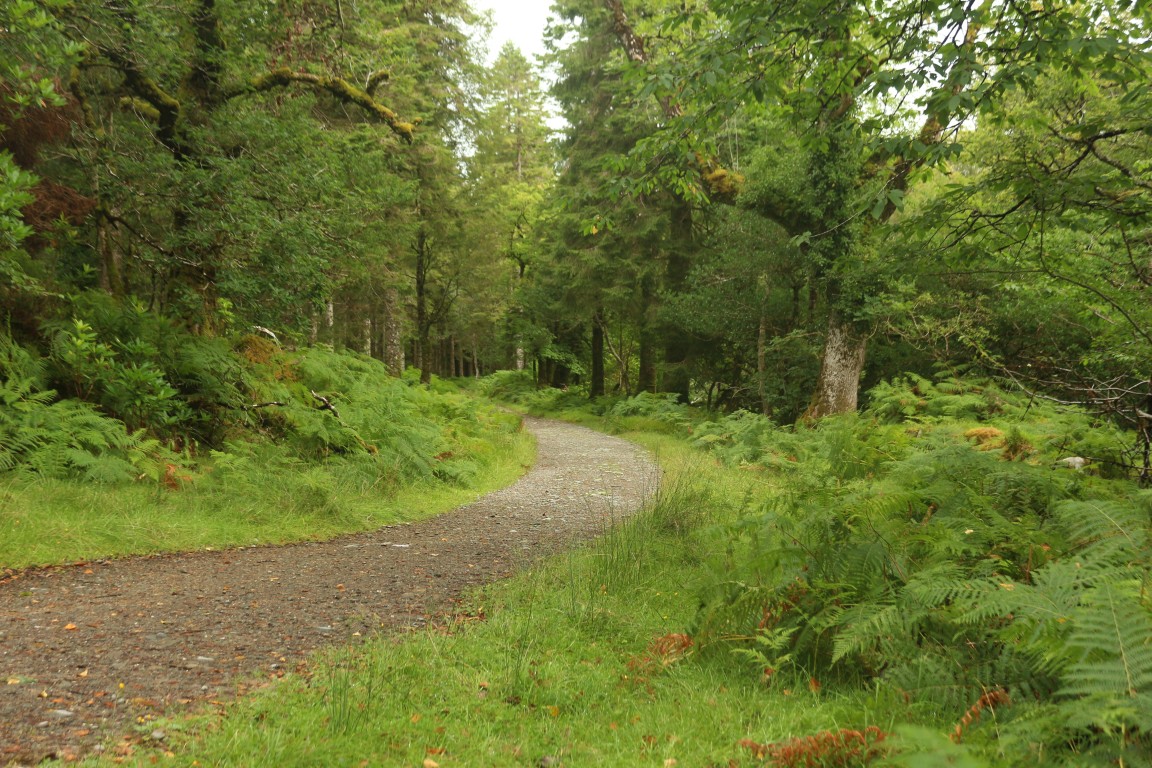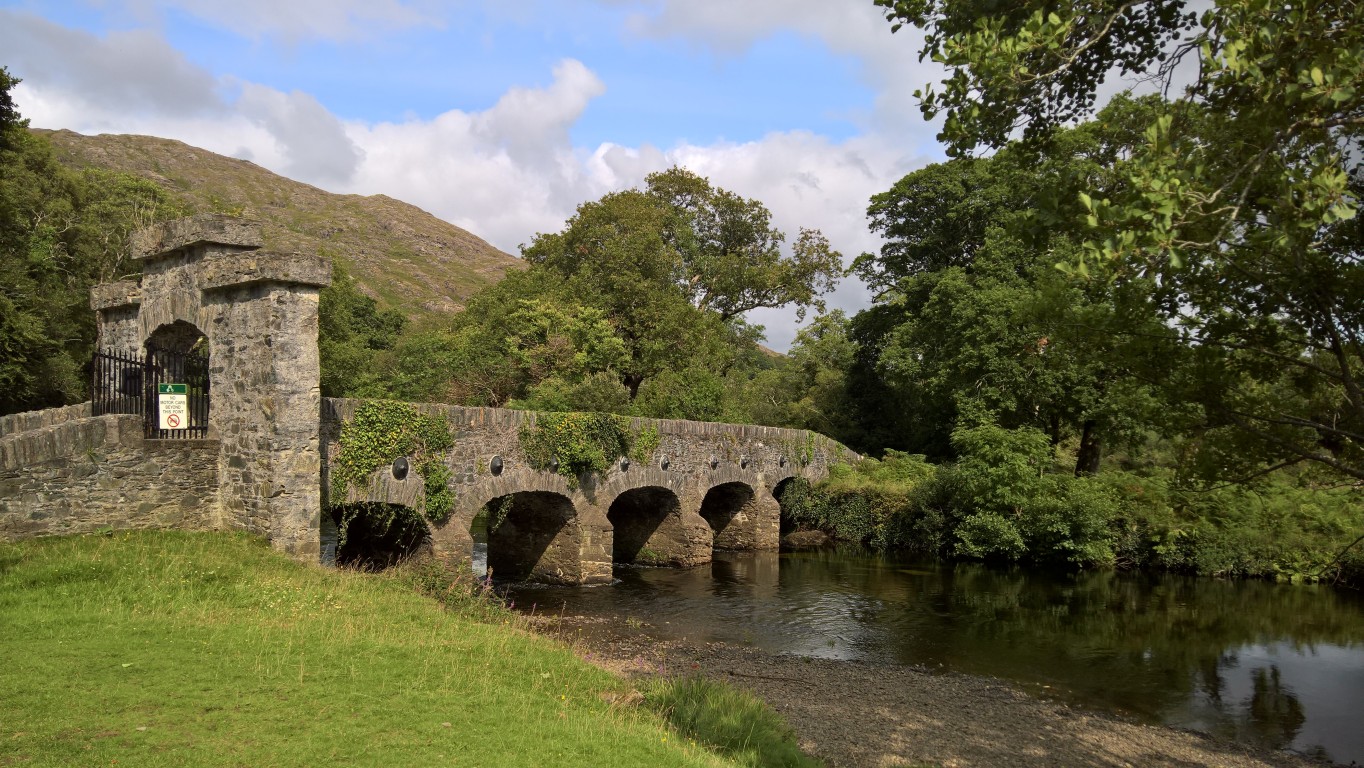 Die erte Etappe führt zunächst an einer Straße entlang aus Killarney hinaus bis zum Killarney National Park. Hier läuf man über viele schön gepflegte Rasenflächen und entlang des Sees Lough Leane. Nach etwa sechs Kilometern läuft man am Muckross House vorbei, einem ehemaligen herrschaftlichen Anwesen. Weiter geht's nach etwa zwei Kilometern zum Torc Wasserfall. Von hier aus startet die Tour erst so richtig. denn man verlässt den geteerten (Touristen-) Weg und kommt langsam aber sicher in die Wildnis.